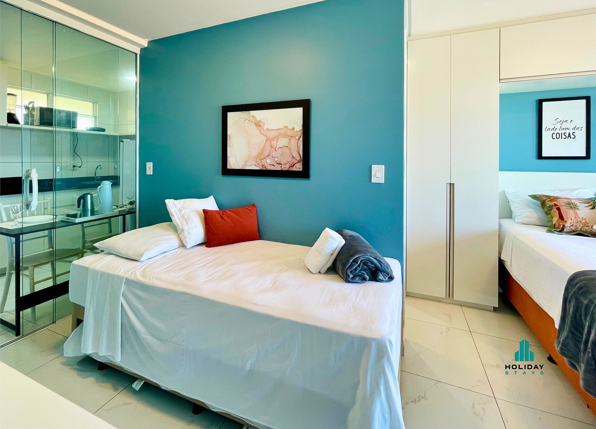 Descubra nossos apartamentos de alto padrão no Fortaleza Sul, projetados para atender a todos os tipos de viajantes: famílias, profissionais a trabalho ou casais em busca de uma estadia inesquecível. Localizados em uma região estratégica, nossos imóveis unem conforto, bom gosto e praticidade em um ambiente moderno e acolhedor.