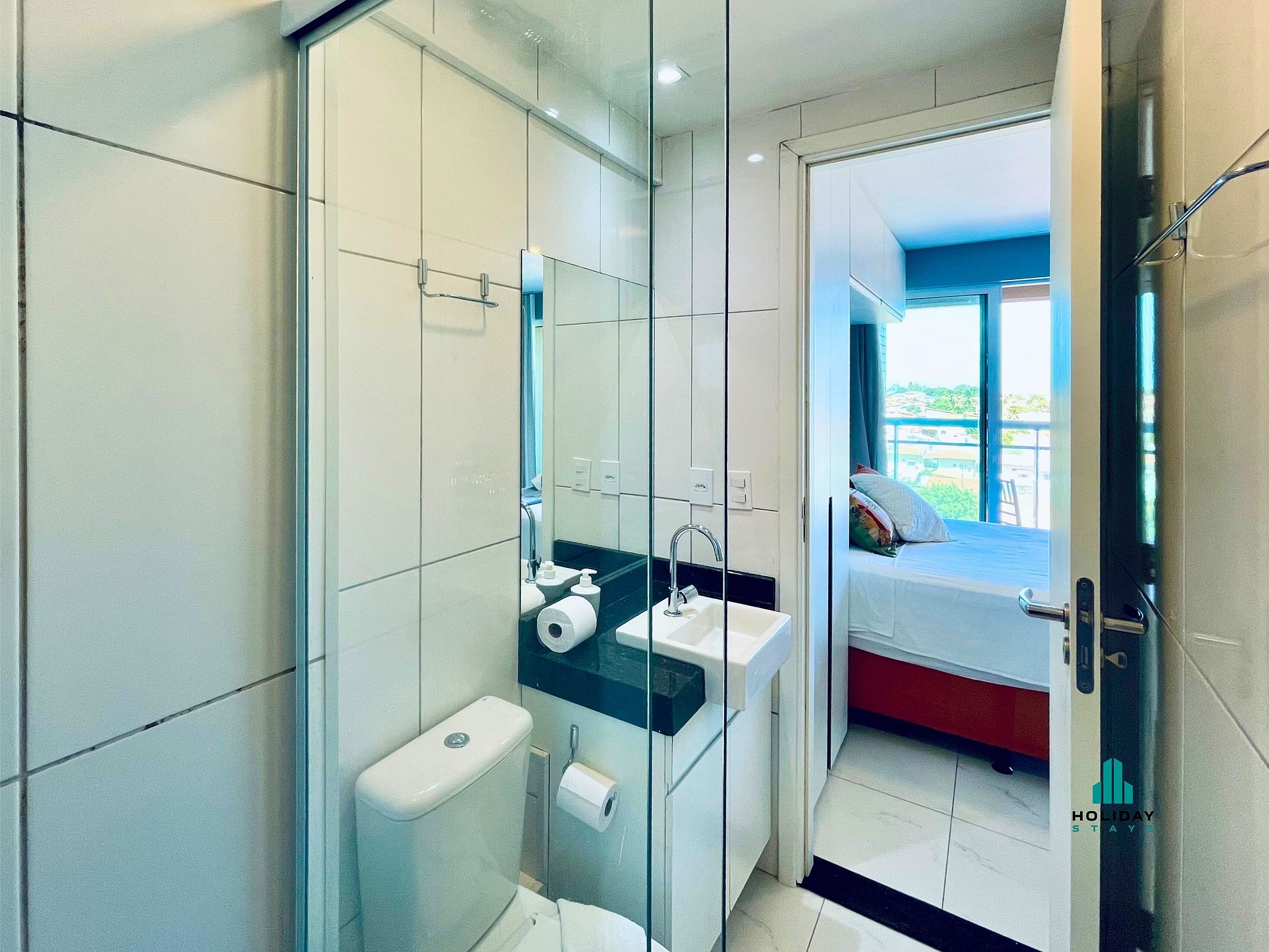 Acesso: fechadura eletrônica. A senha é enviada no dia da chegada, somente após o preenchimento do check-in online (obrigatório antes da entrada no condomínio).