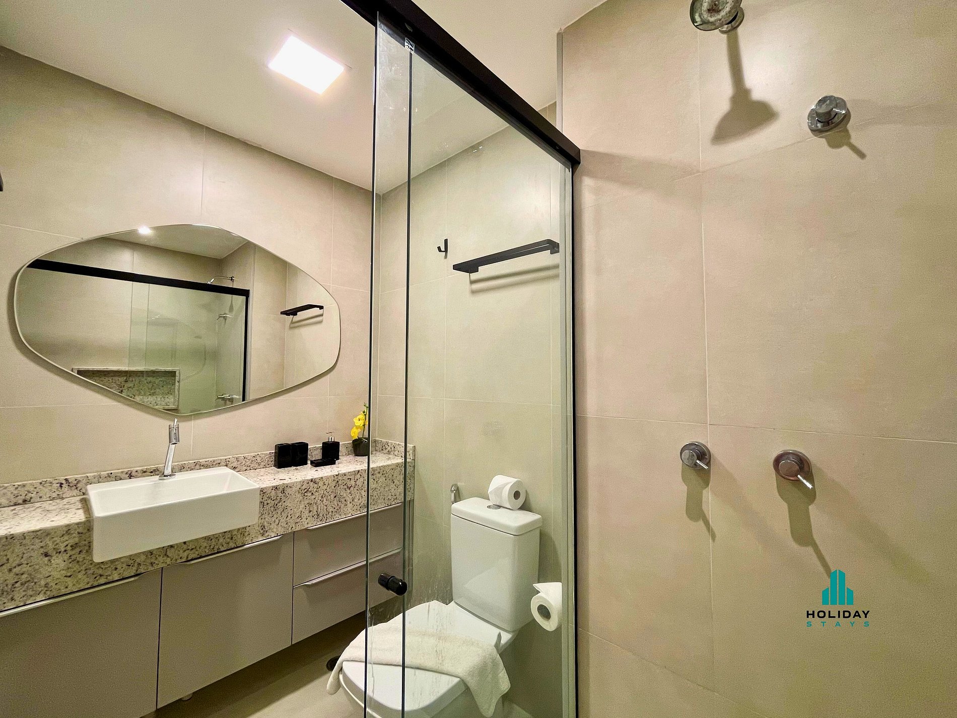 Acesso: fechadura eletrônica. A senha é enviada no dia da chegada, somente após o preenchimento do check-in online (obrigatório antes da entrada no condomínio).
