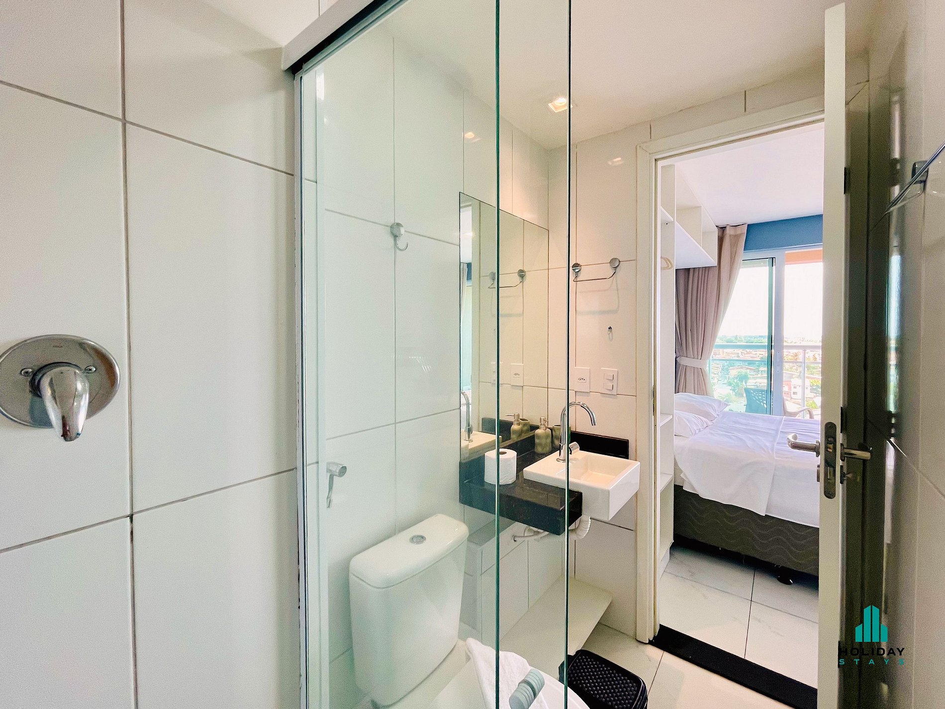 Acesso: fechadura eletrônica. A senha é enviada no dia da chegada, somente após o preenchimento do check-in online (obrigatório antes da entrada no condomínio).
