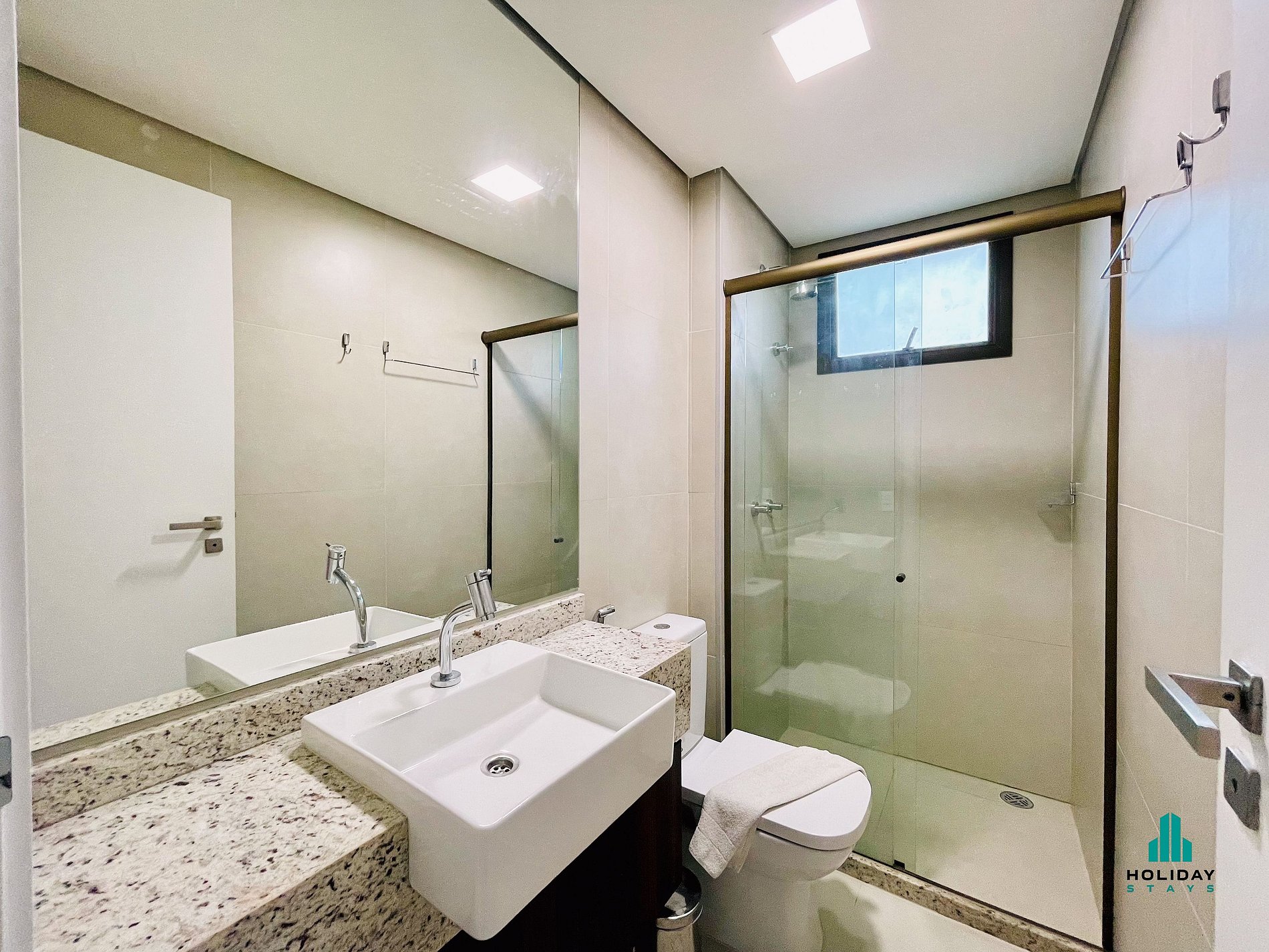Acesso: fechadura eletrônica. A senha é enviada no dia da chegada, somente após o preenchimento do check-in online (obrigatório antes da entrada no condomínio).