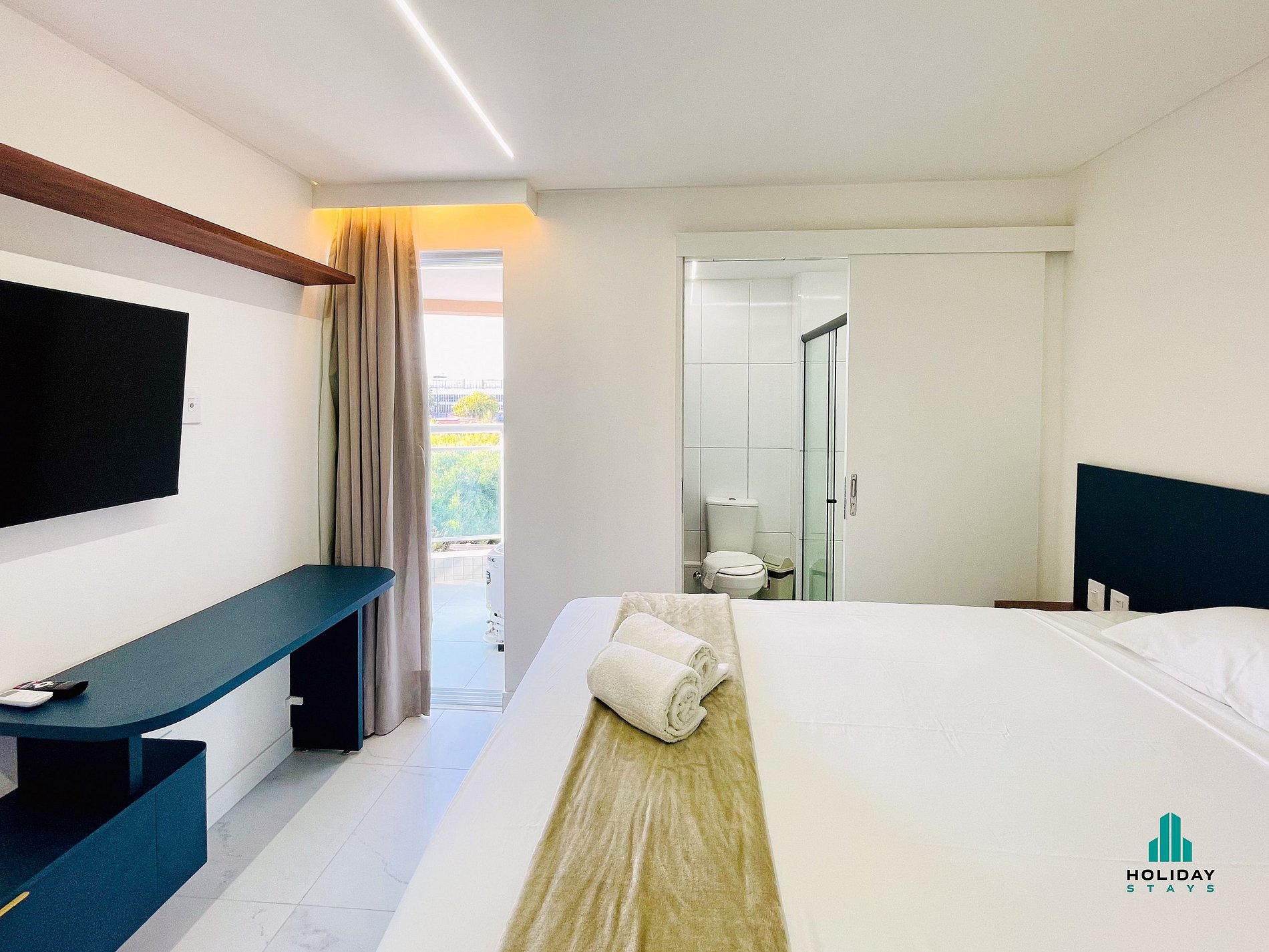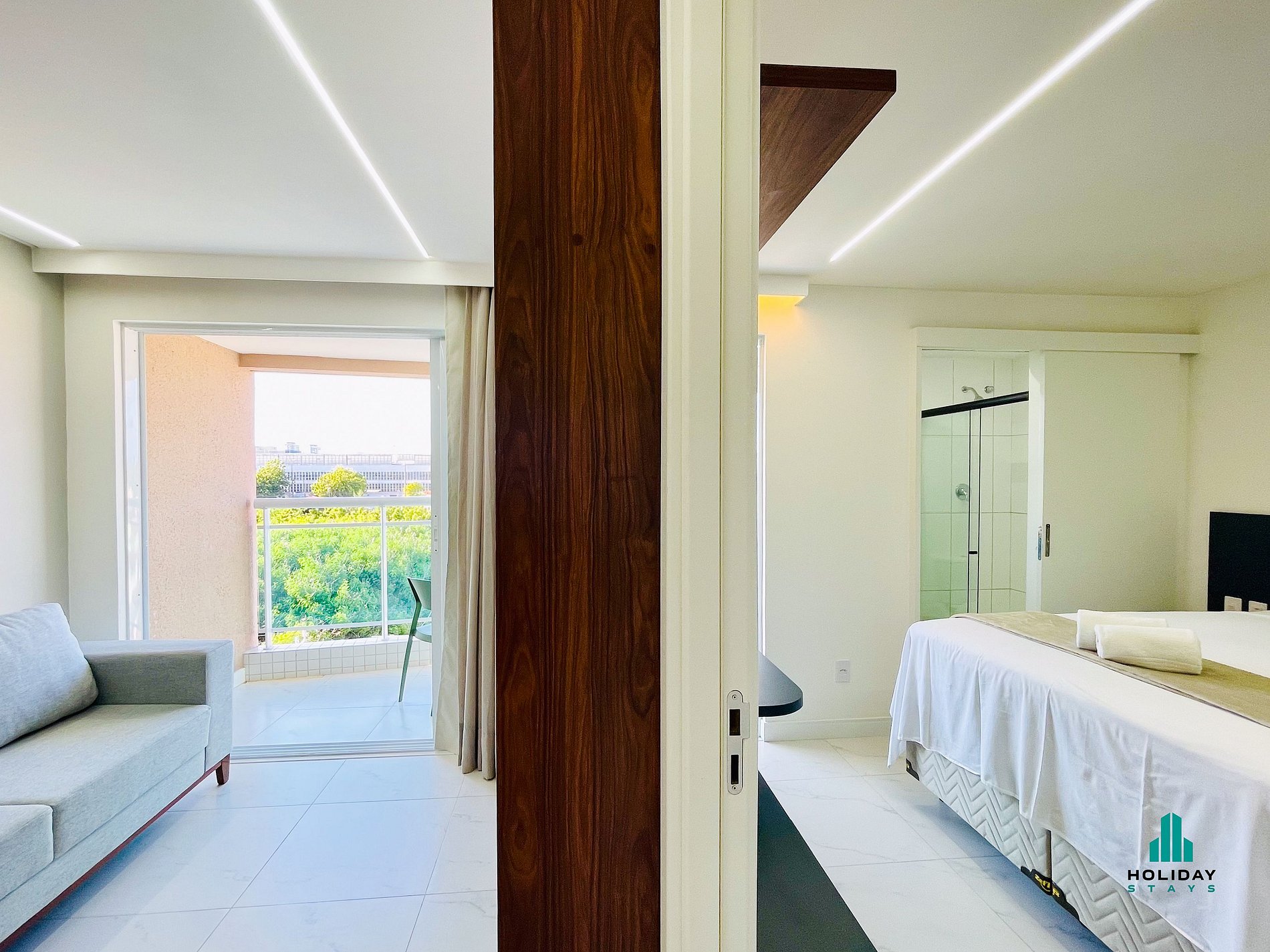 Descubra nossos apartamentos de alto padrão no Fortaleza Sul, projetados para atender a todos os tipos de viajantes: famílias, profissionais a trabalho ou casais em busca de uma estadia inesquecível. Localizados em uma região estratégica, nossos imóveis unem conforto, bom gosto e praticidade em um ambiente moderno e acolhedor.