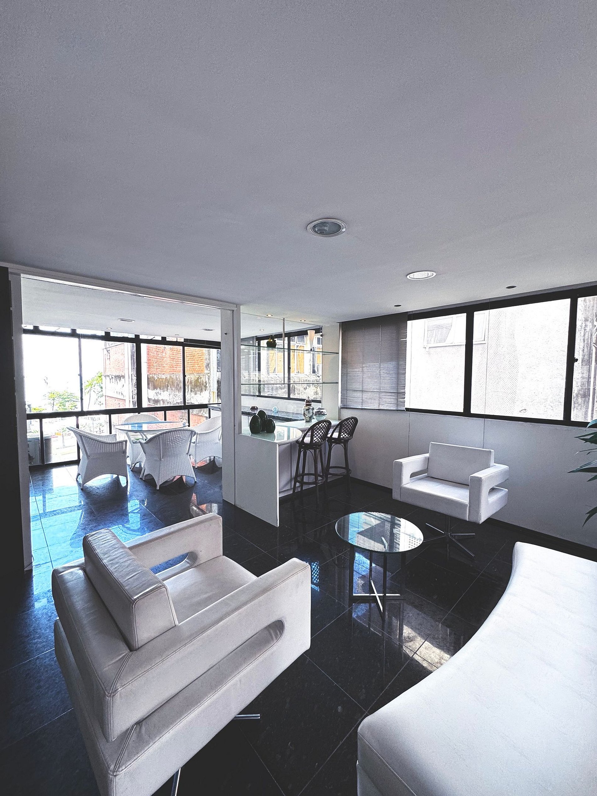 Sala: ampla, com 3 ambientes para relaxar e socializar