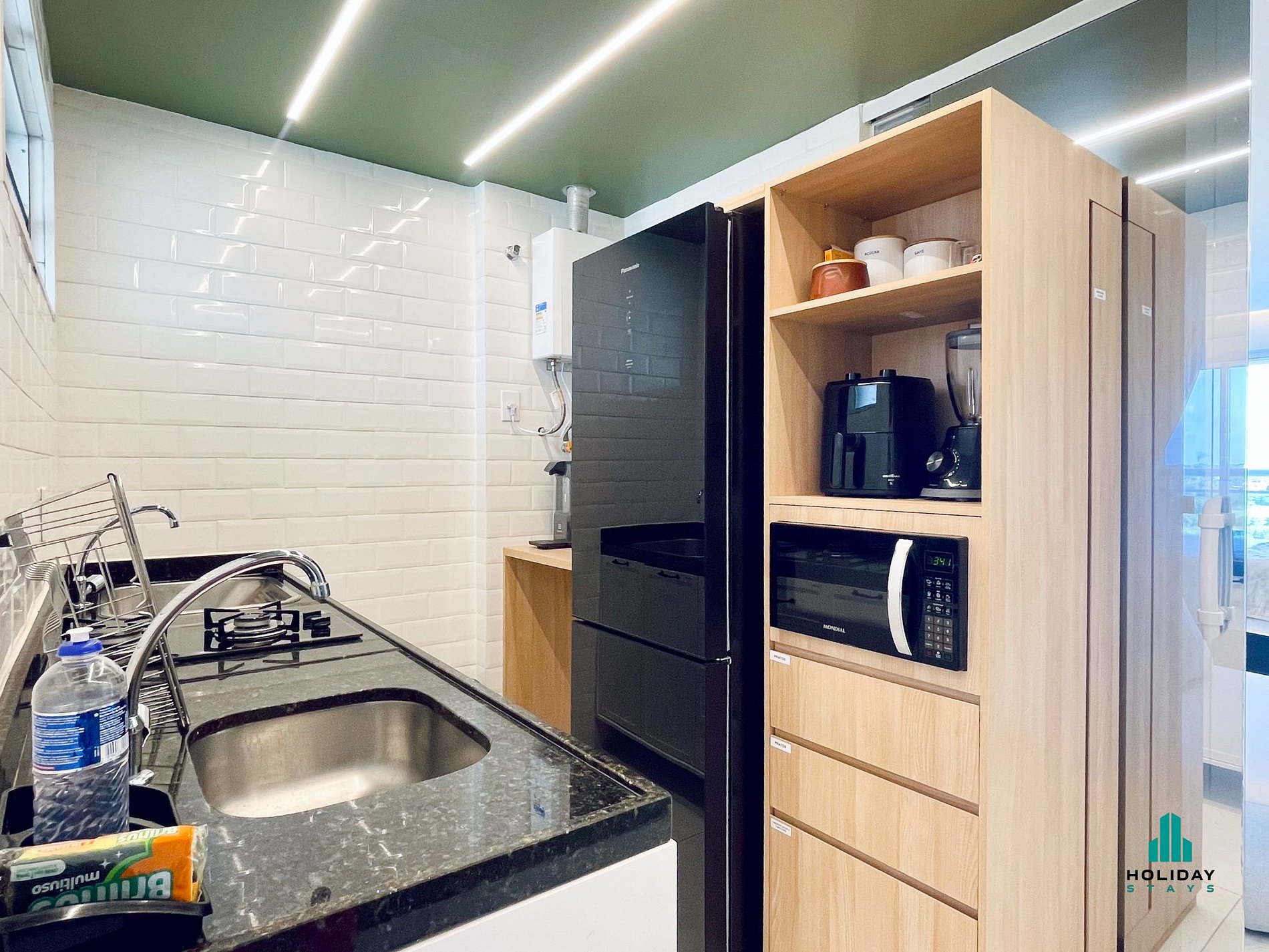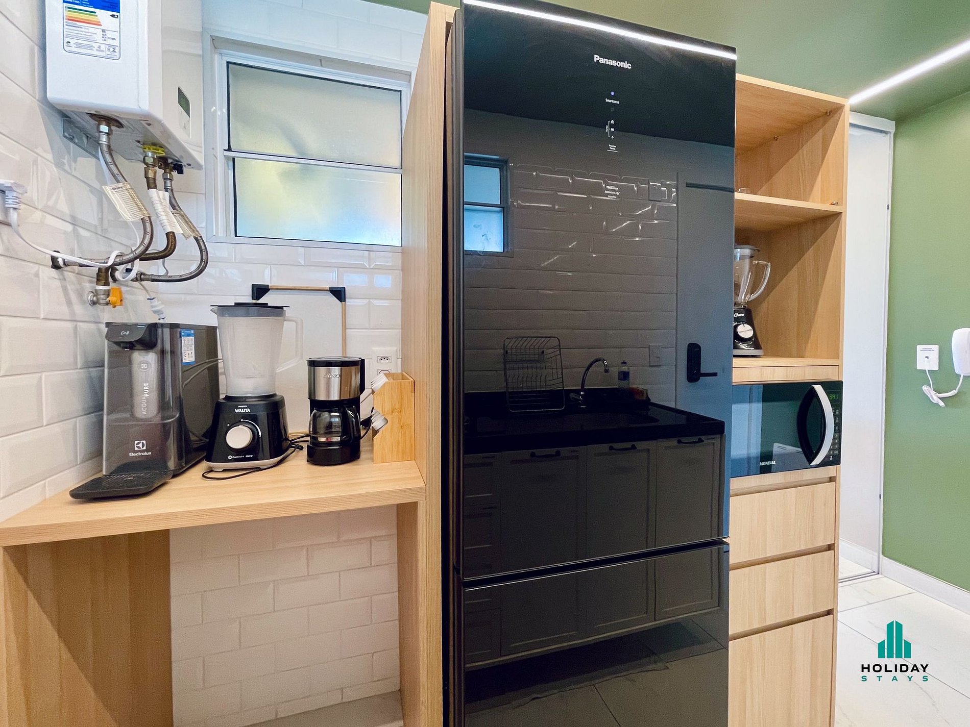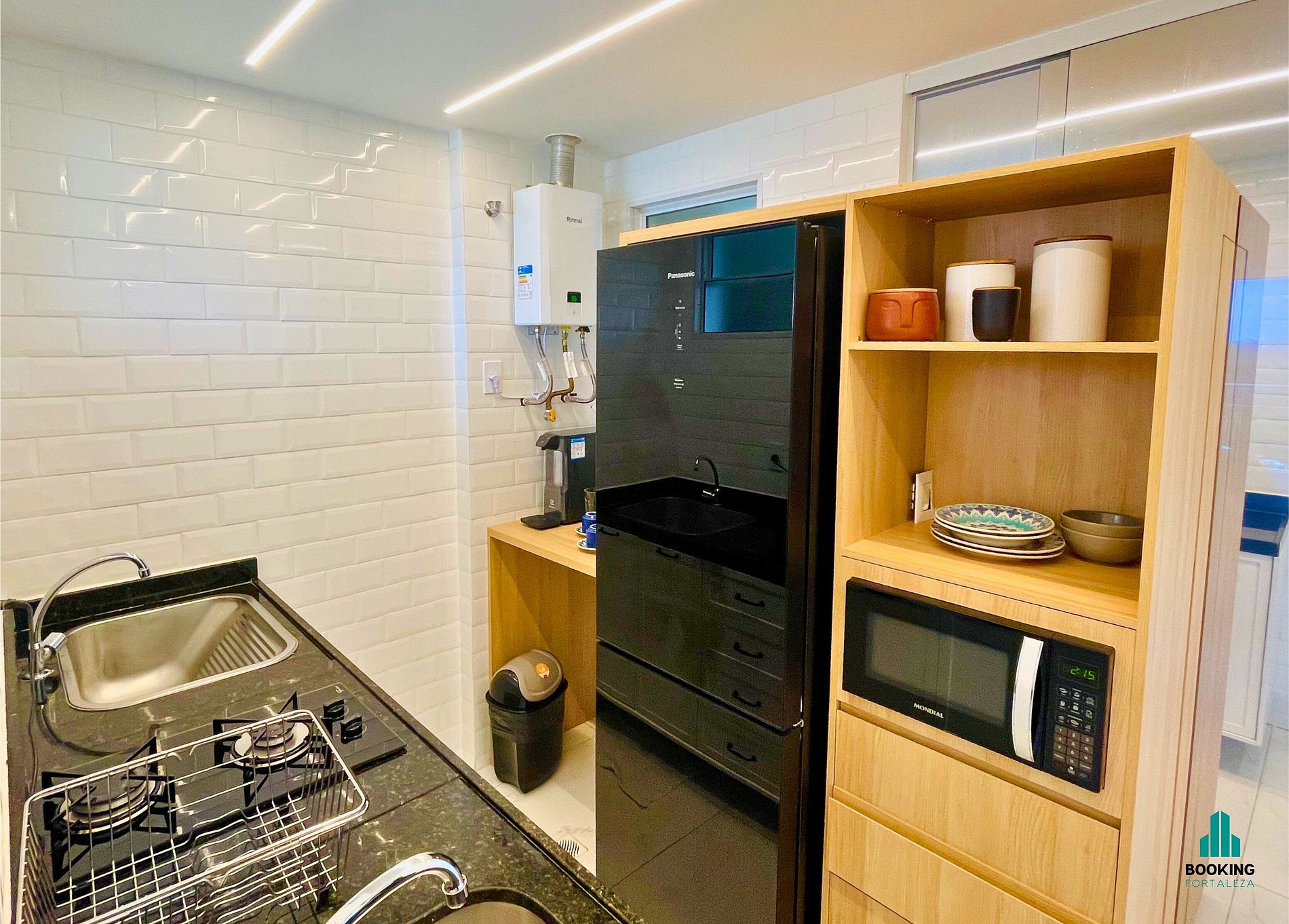 Cozinha Completa: Totalmente equipada com geladeira, fogão, micro-ondas, cafeteira e utensílios essenciais para preparar suas refeições.