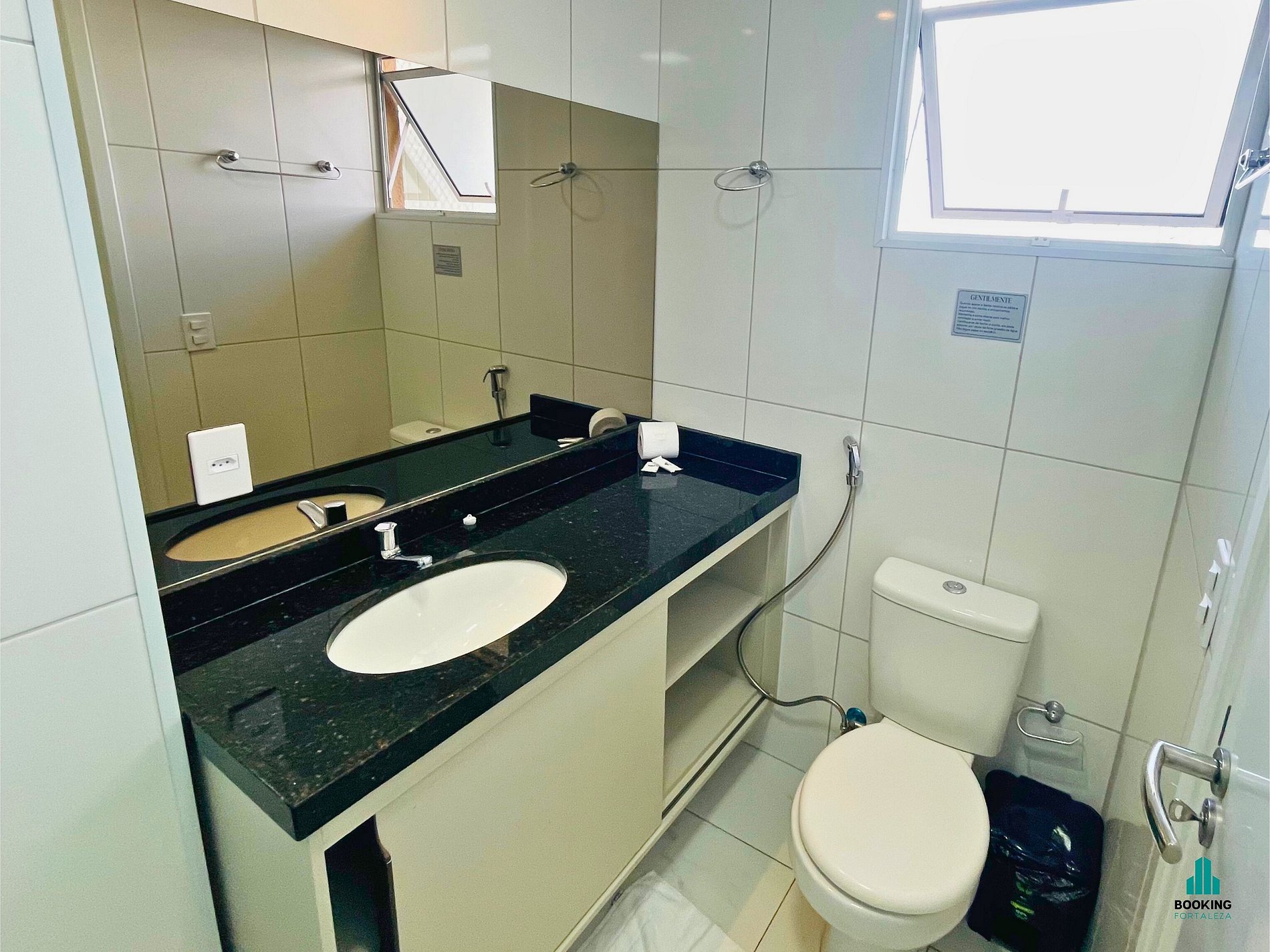 Banheiro Moderno: Funcional e bem decorado, com ducha quente e fria.