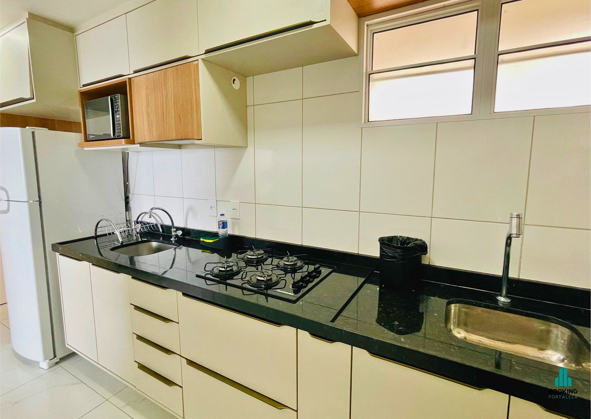 Cozinha Completa: Com utensílios, geladeira e fogão para preparar suas refeições.