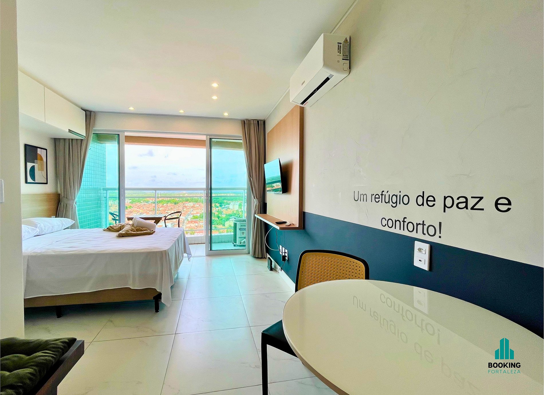 Desfrute de um studio moderno e confortável, ideal para casais ou executivos a trabalho. O espaço conta com: