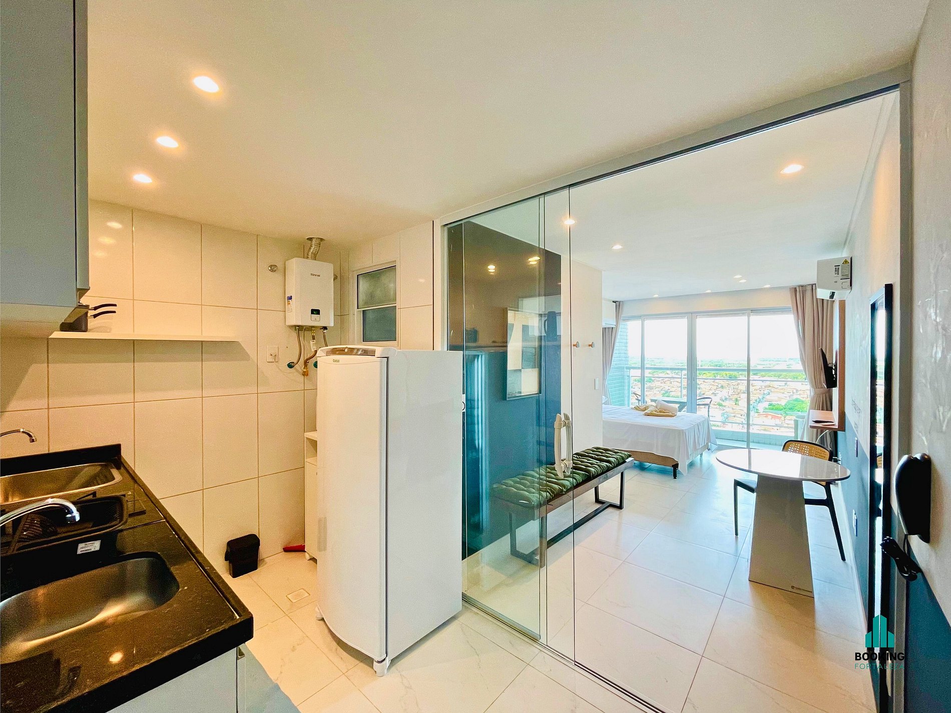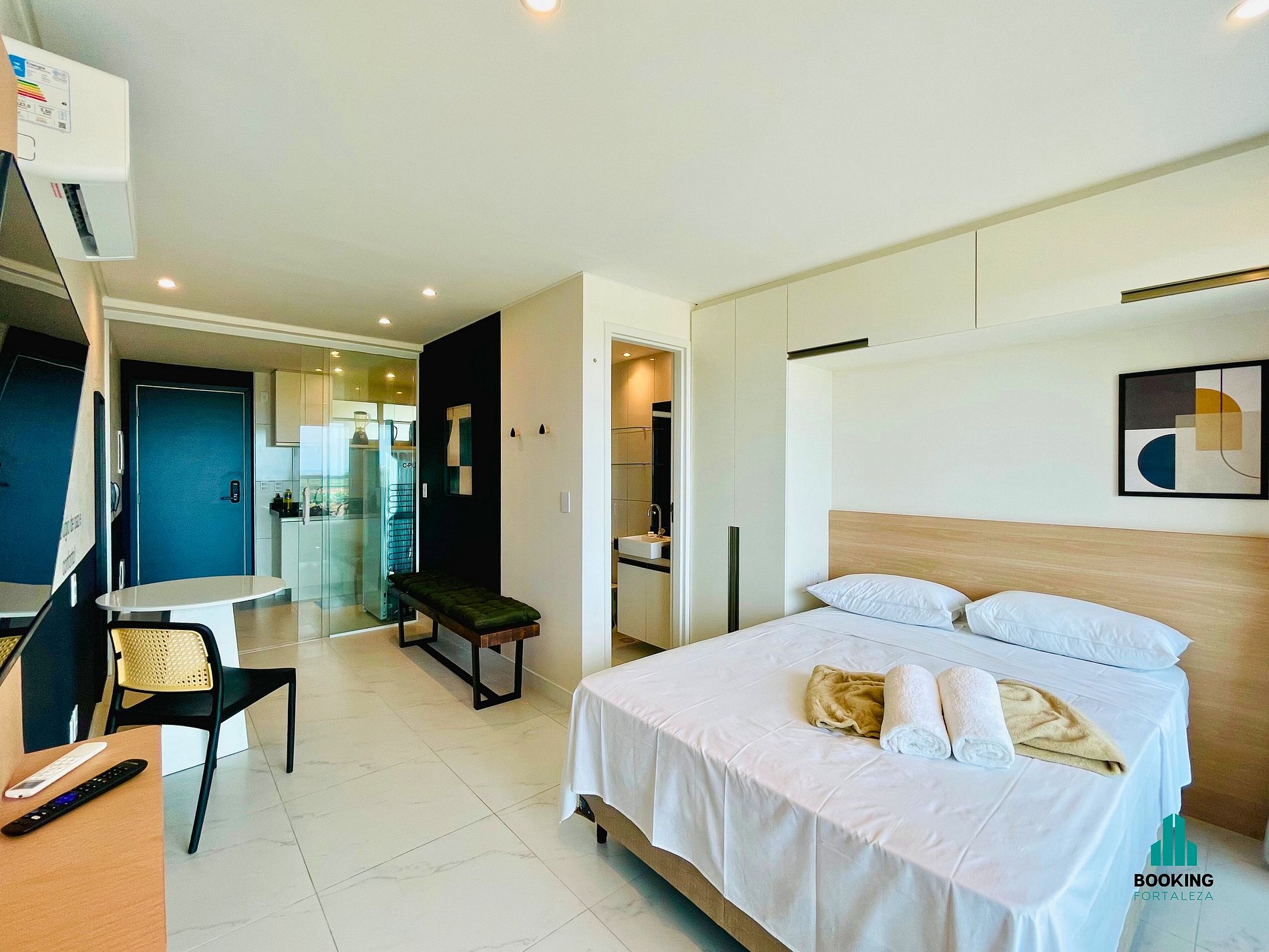 Desfrute de um studio moderno e confortável, ideal para casais ou executivos a trabalho. O espaço conta com: