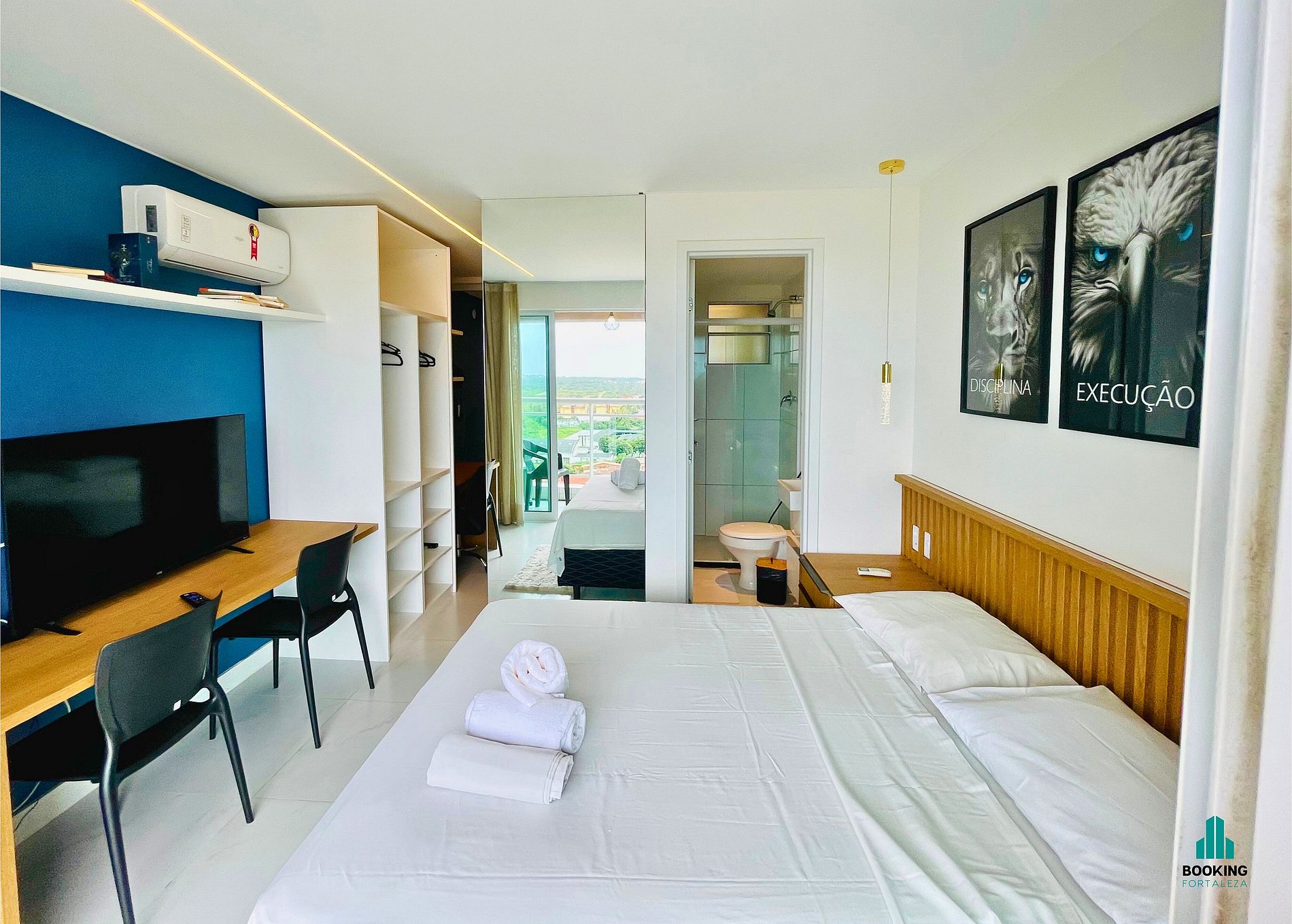 Desfrute de um studio moderno e confortável, ideal para casais ou executivos a trabalho. O espaço conta com: