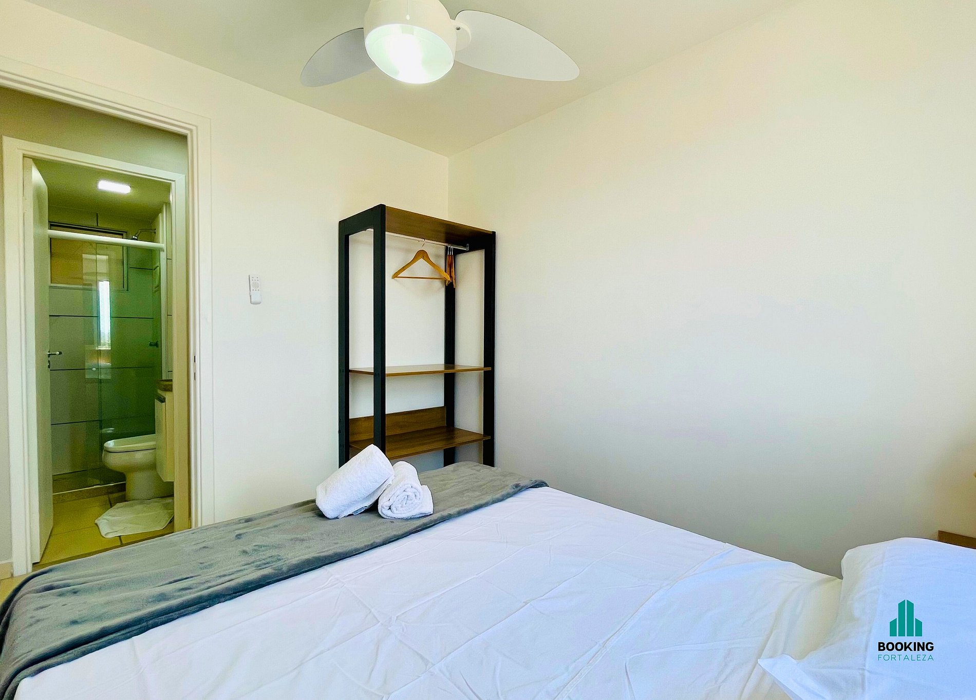 1 quarto com cama de casal e ventilador