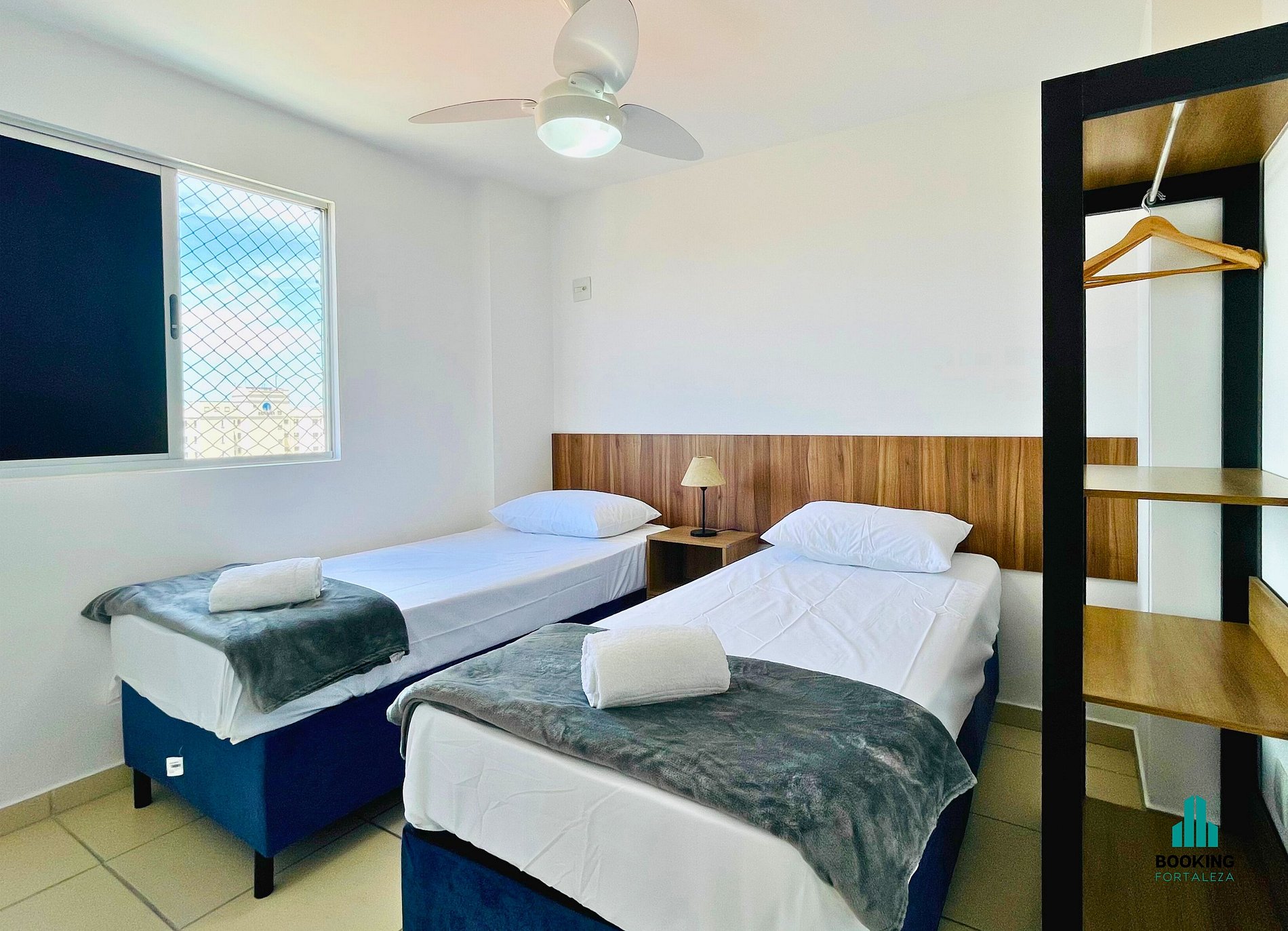 1 quarto com 2 camas de solteiro e ventilador