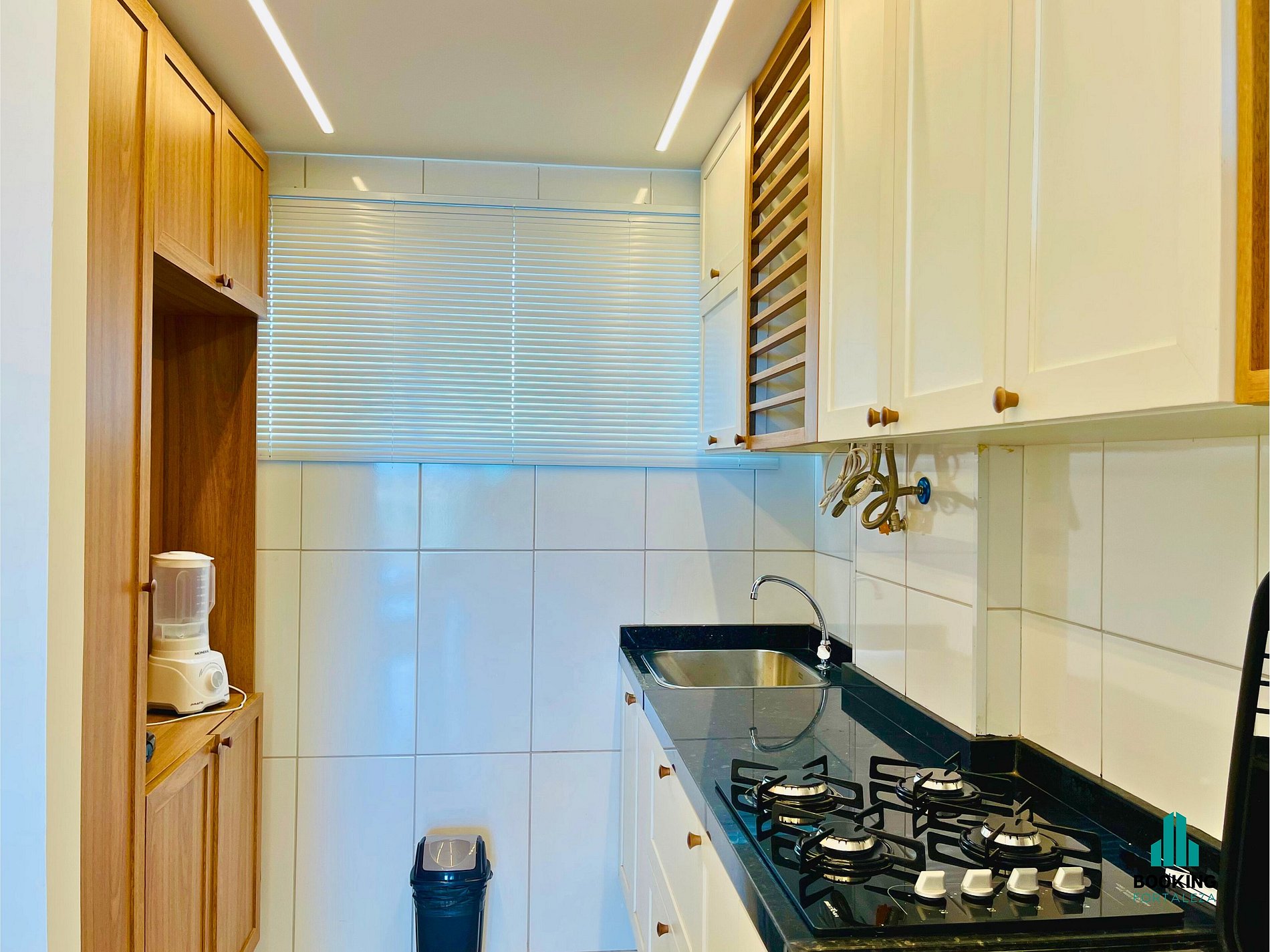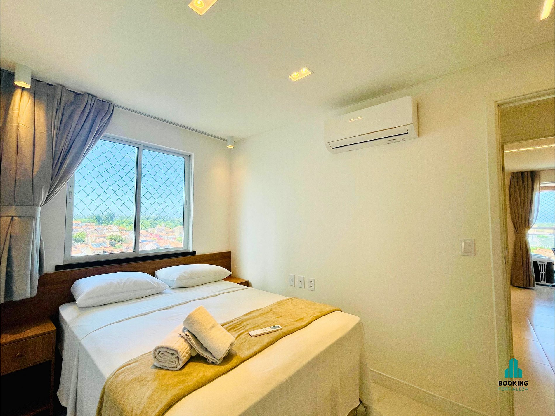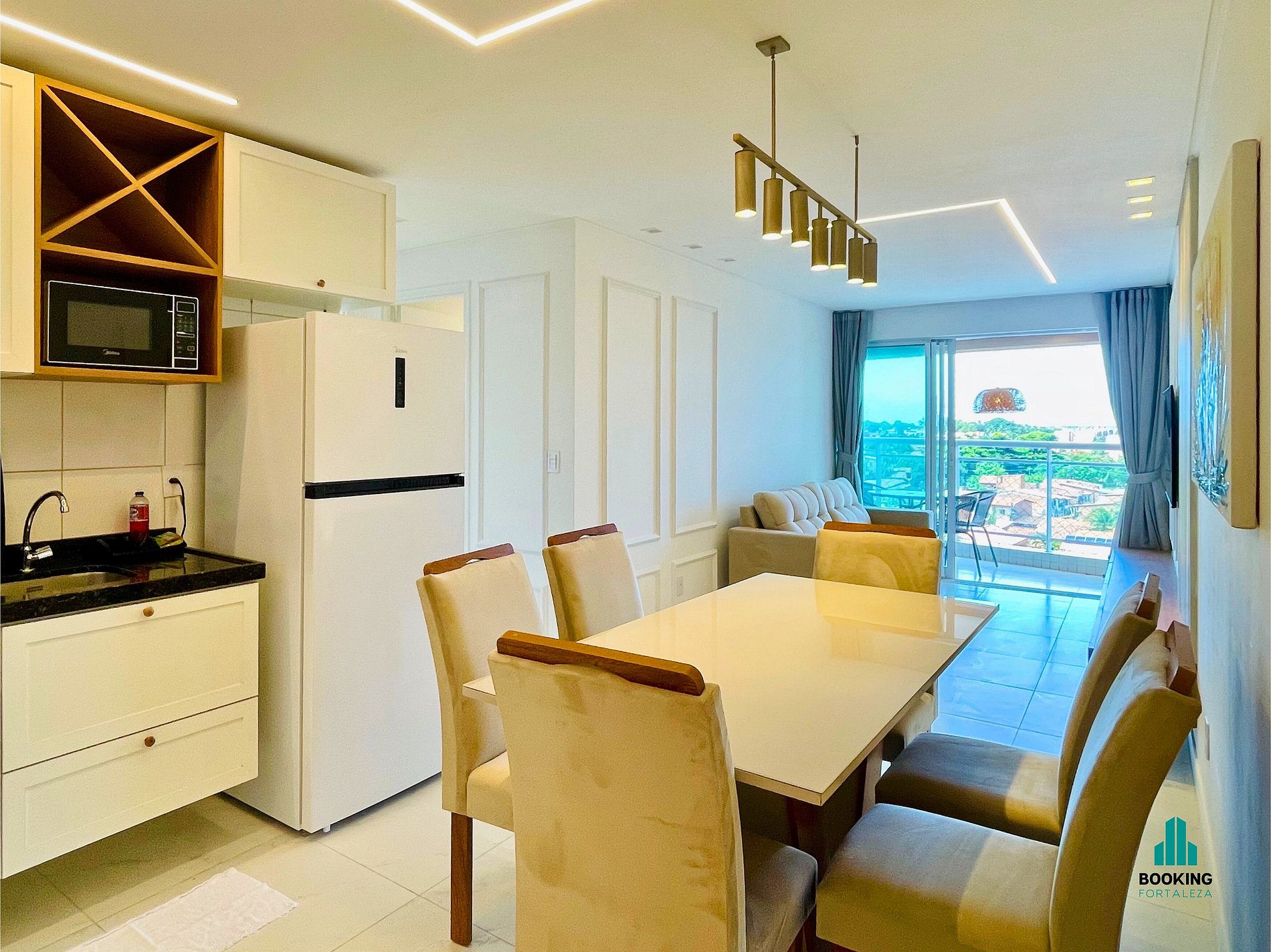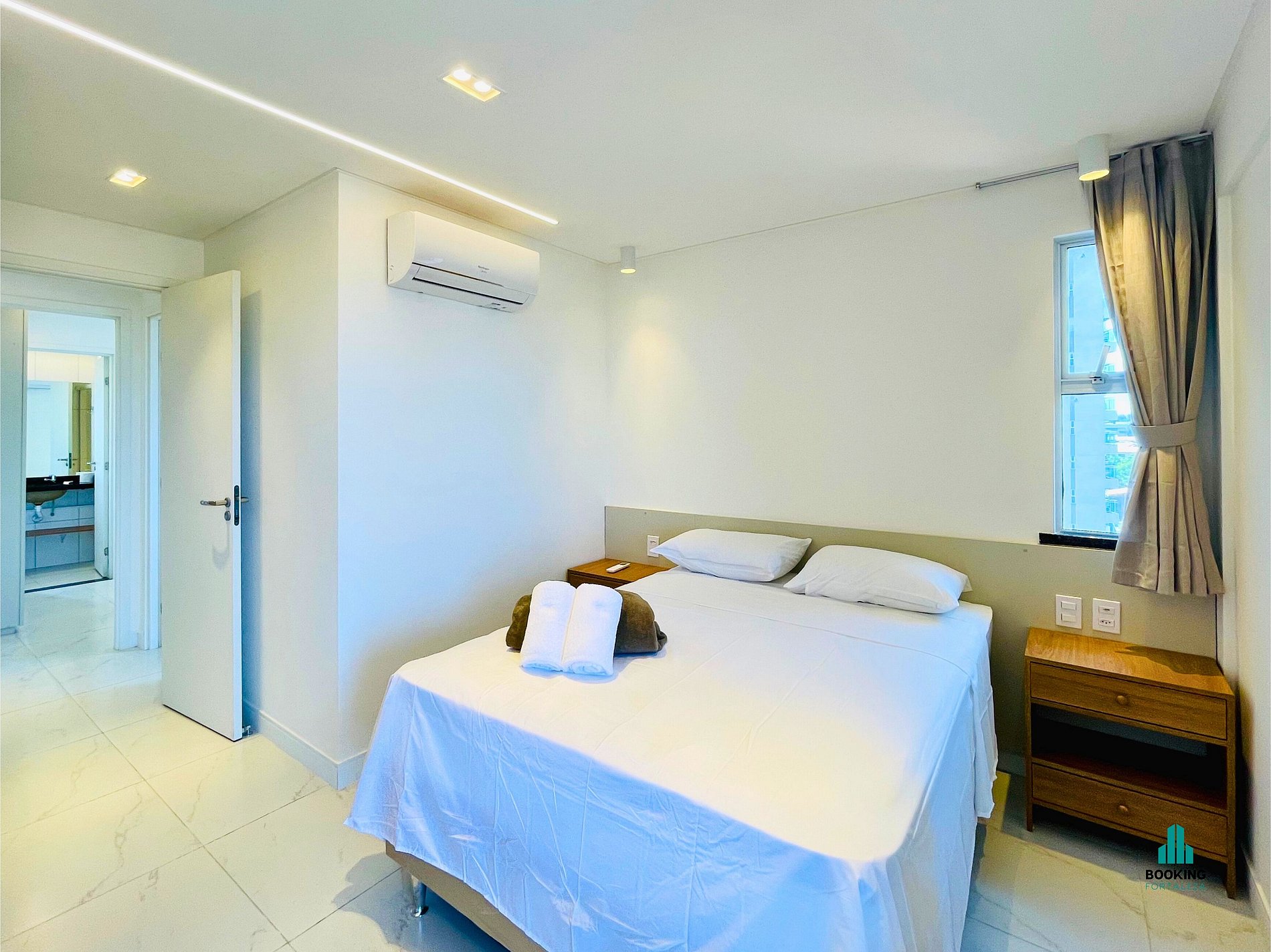 Apartamento refinado com 3 quartos, ideal para hóspedes exigentes. Cozinha ampla e totalmente equipada, sala com sofá e TV, mesa de jantar e varanda com mesa e cadeiras. Duas suítes com cama de casal, ar-condicionado e banheiros com água quente. Terceiro quarto com bicama, mesa e cadeira para home office, também com ar-condicionado. Wi-Fi e roupa de cama e banho incluídas. Ideal para lazer ou trabalho.