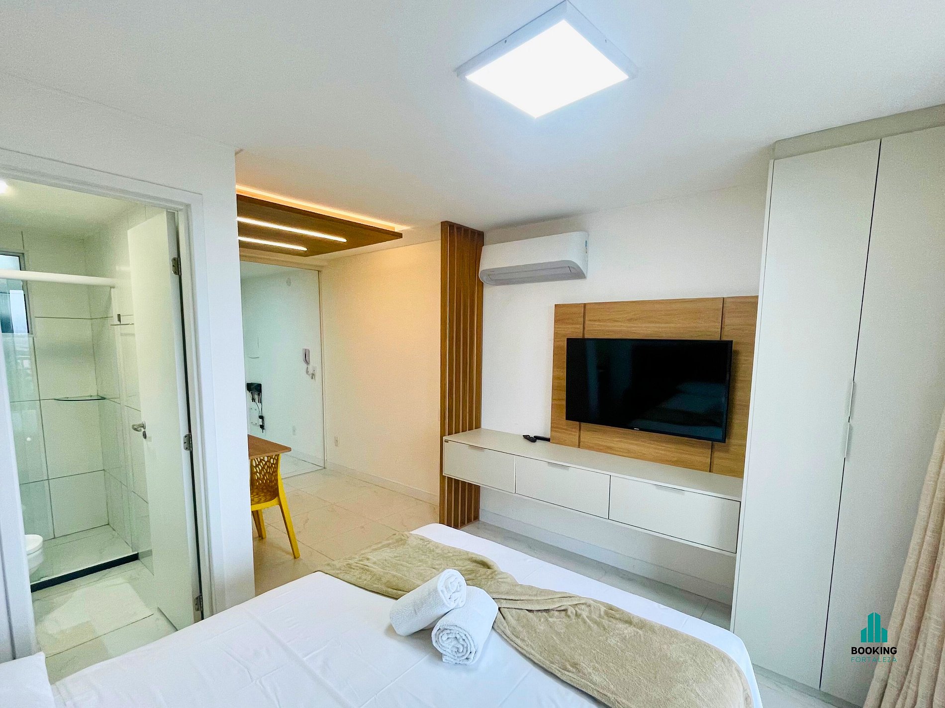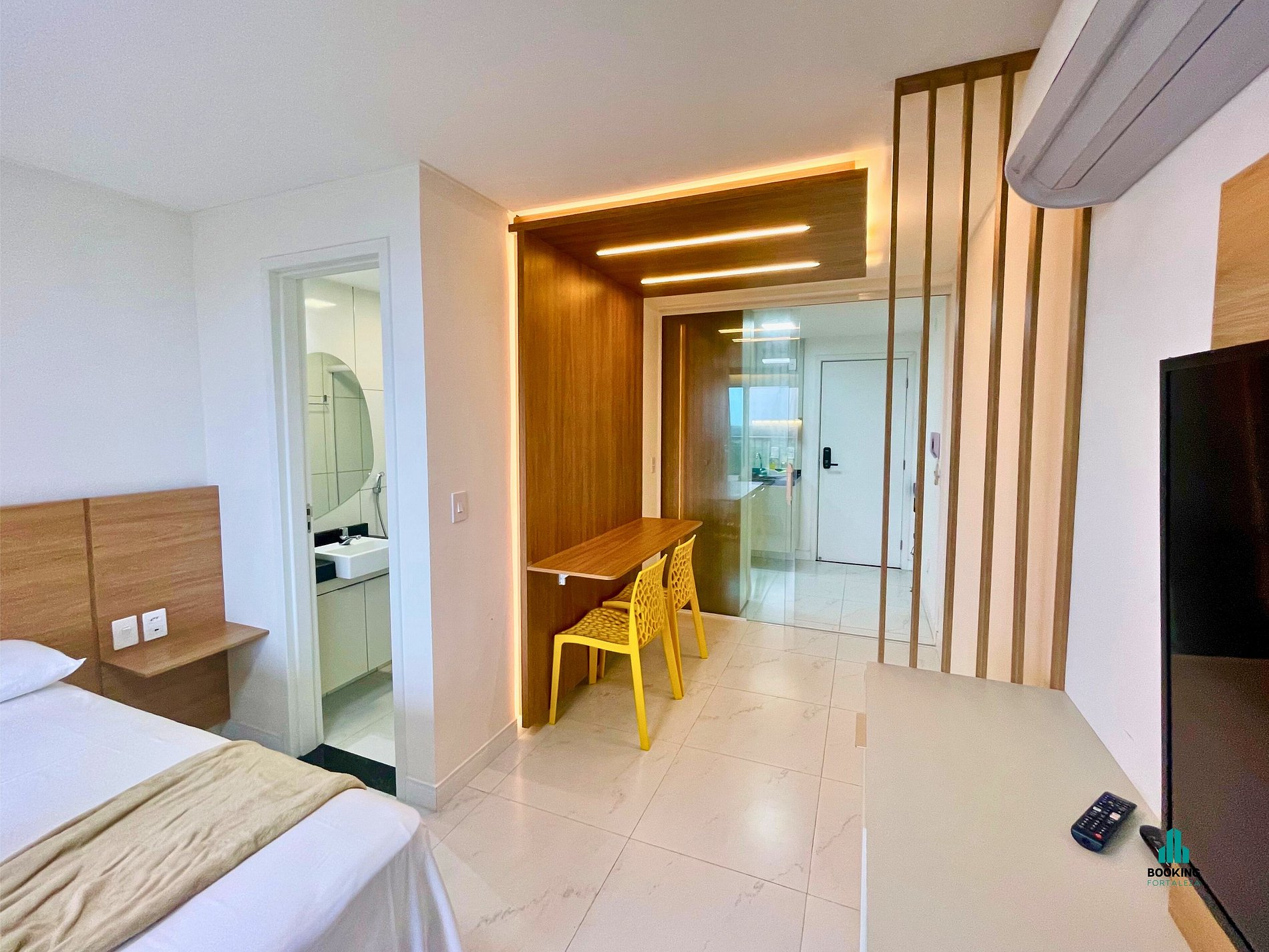 Desfrute de um studio moderno e confortável, ideal para casais ou executivos a trabalho. O espaço conta com: