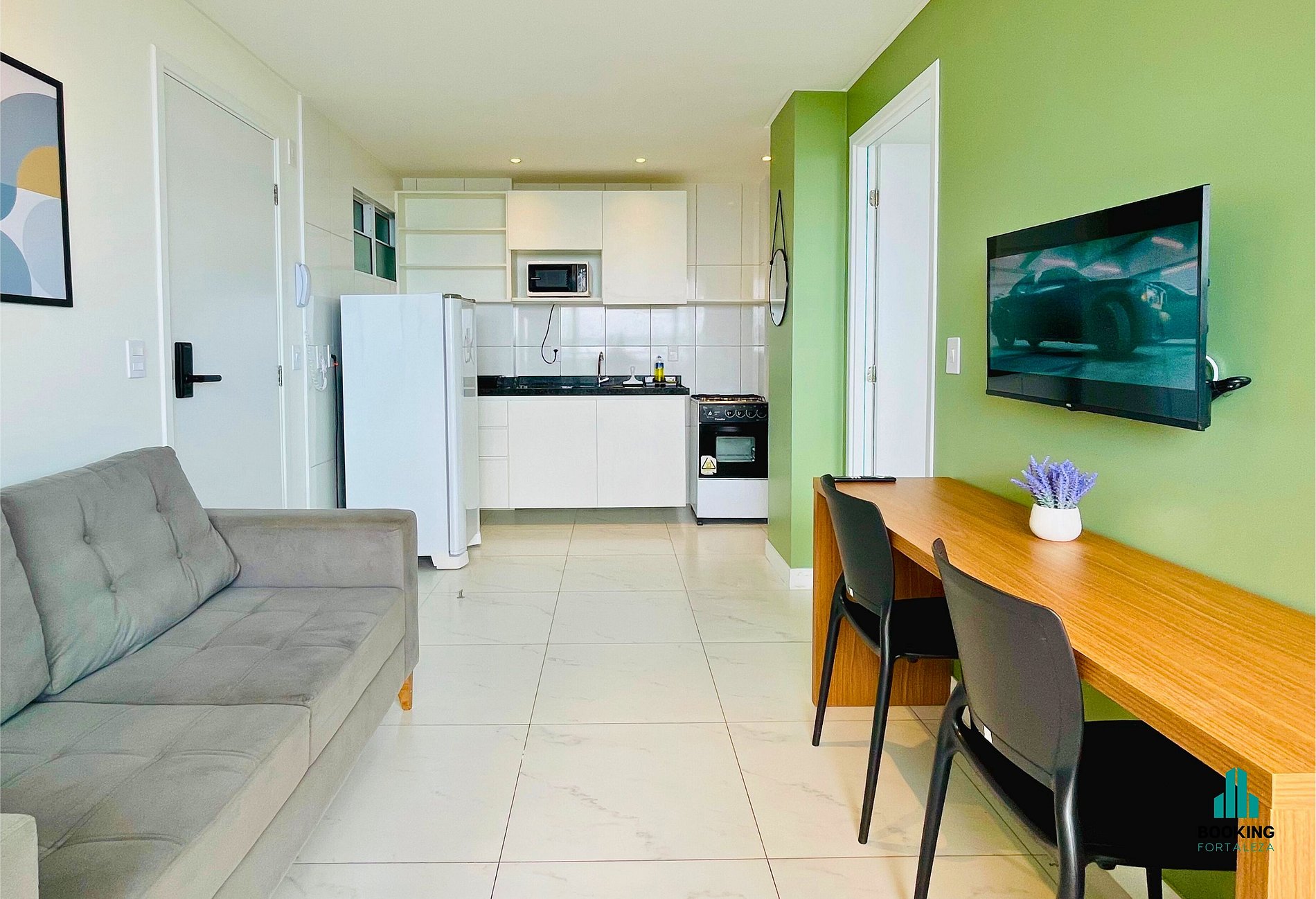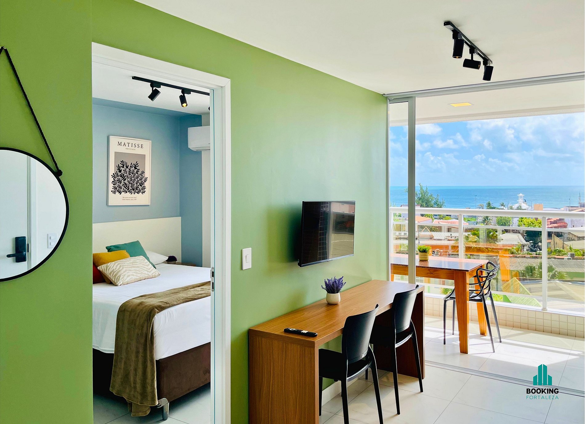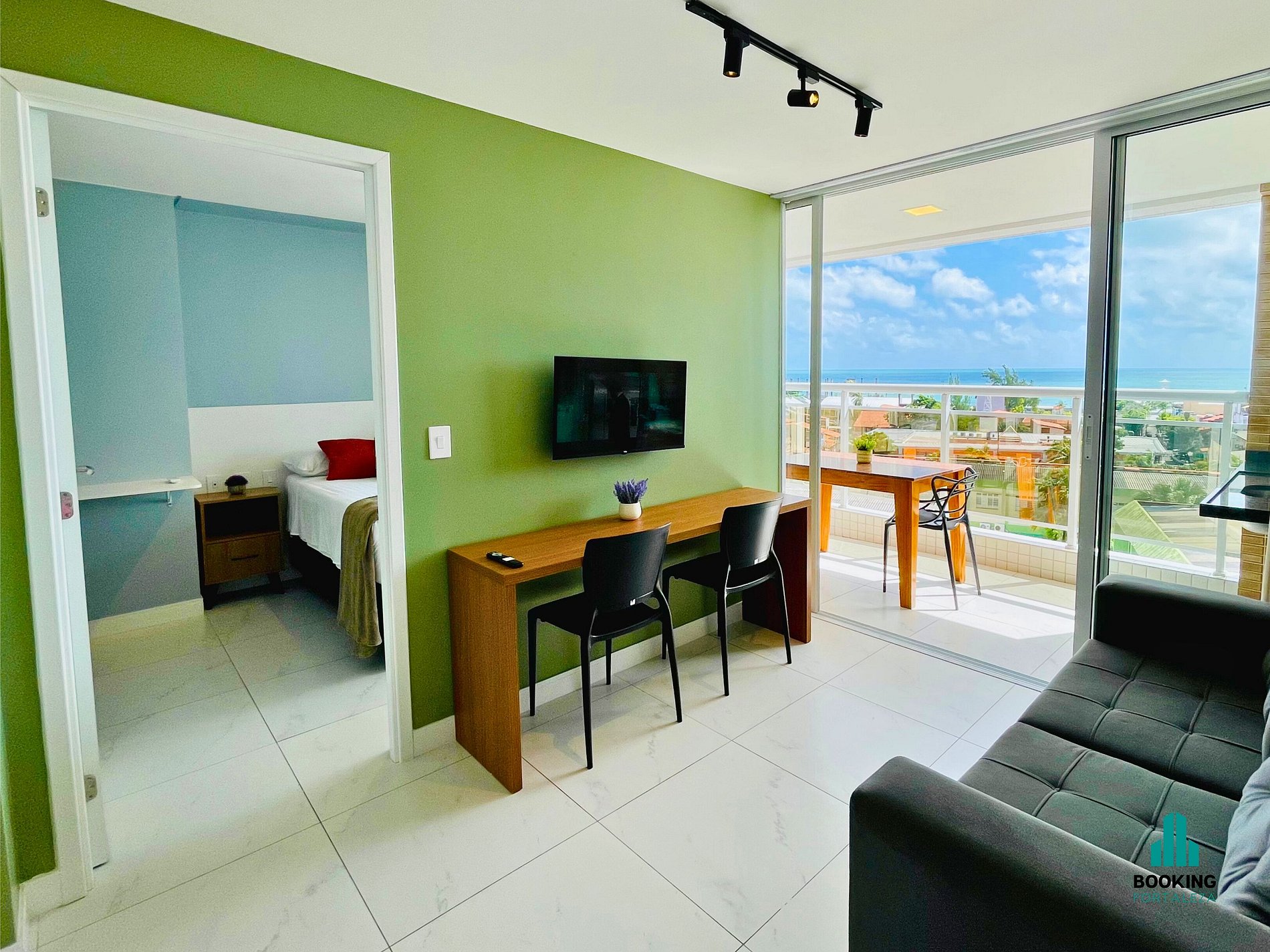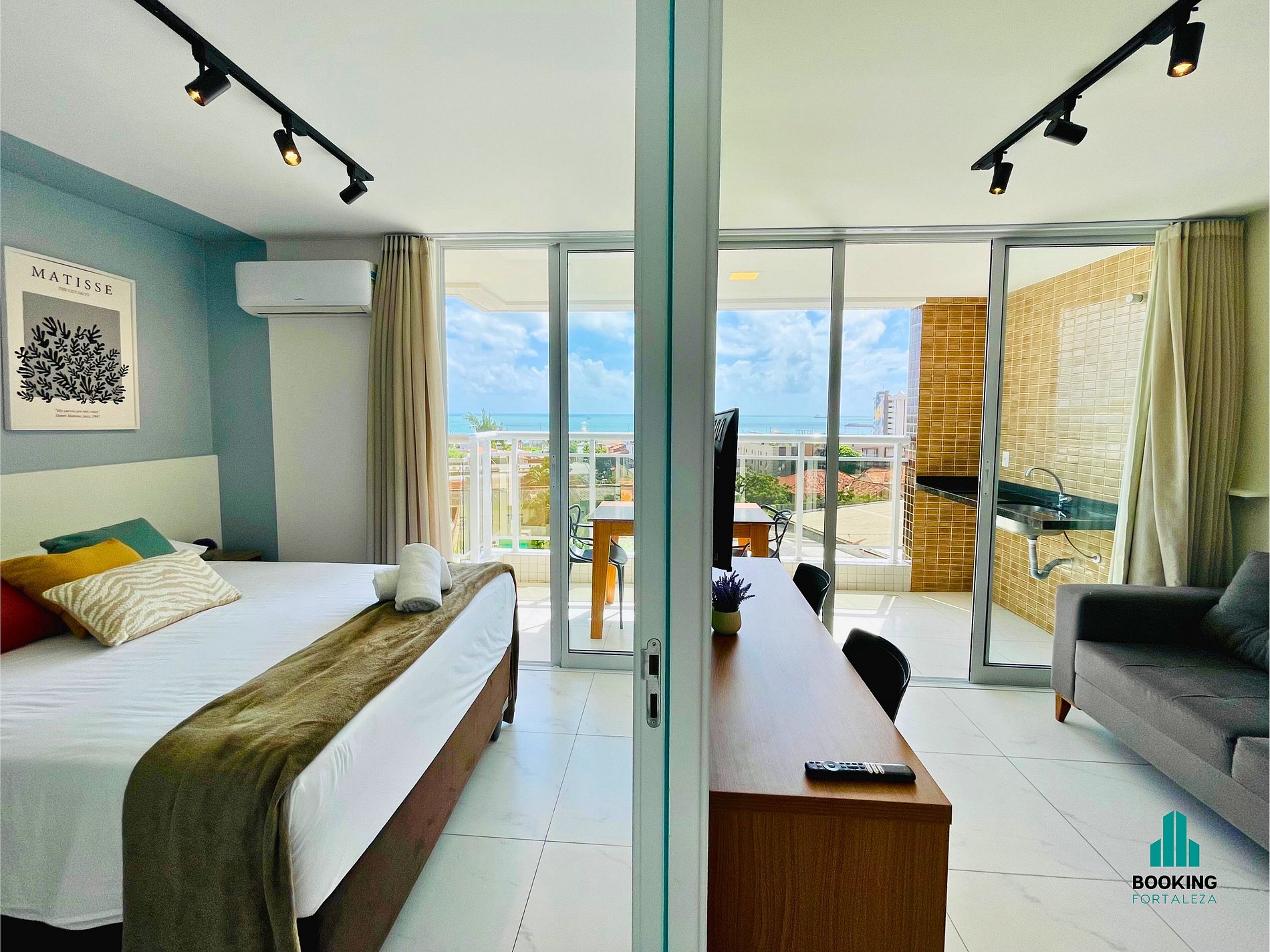 Desfrute de um apartamento moderno e confortável com linda vista pro mar, ideal para casais ou executivos a trabalho. O espaço conta com: