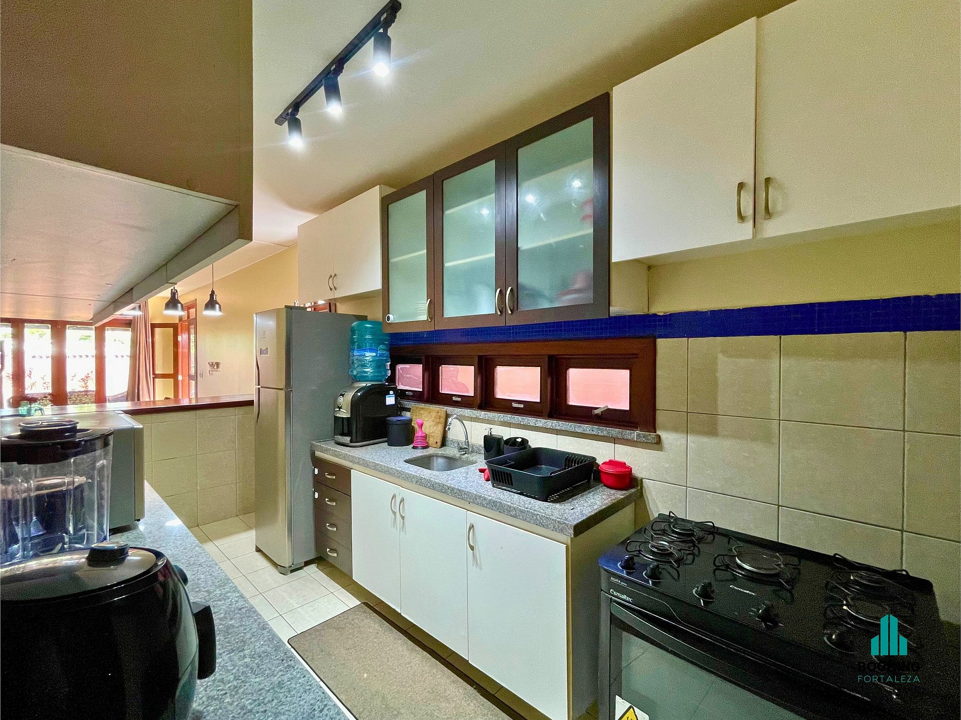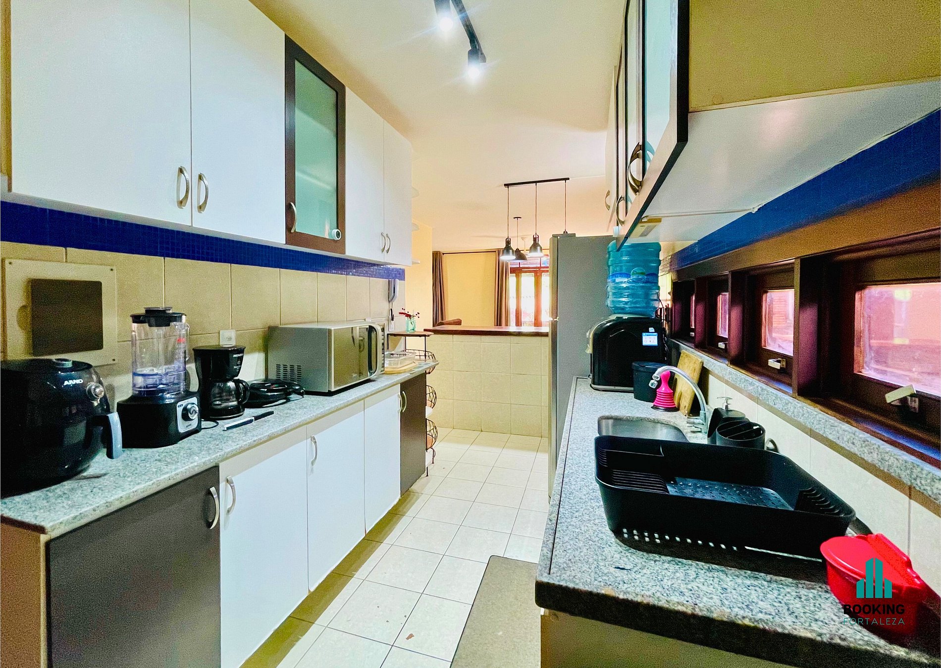 A casa conta com 4 banheiros, todos com água quente e chuveiro. A cozinha está equipada para suas necessidades e a sala possui sofás e TV para seu entretenimento.