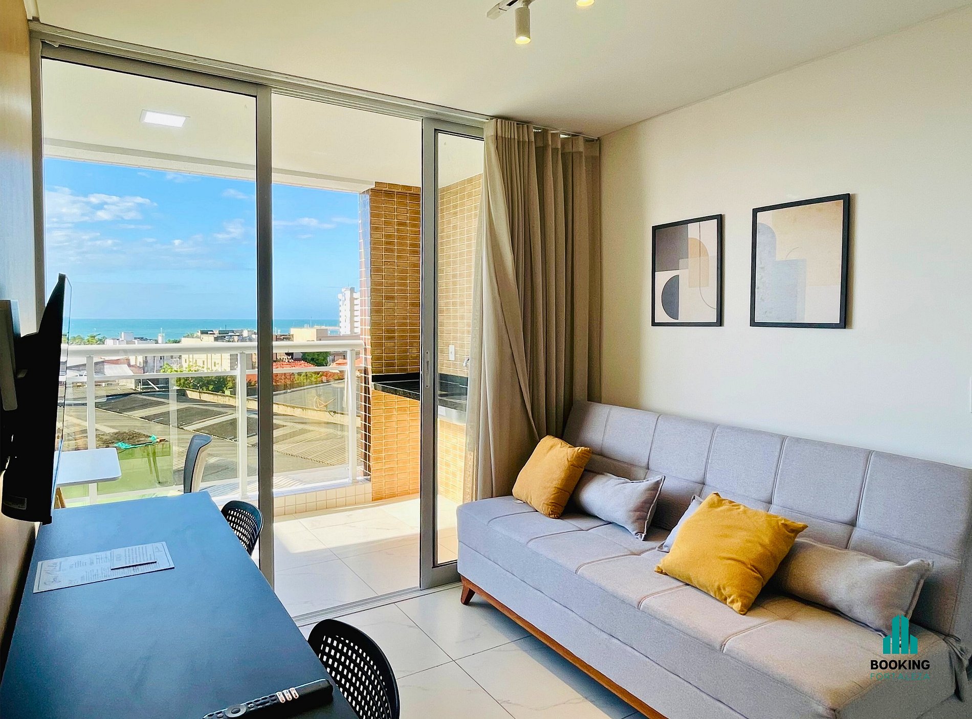 Desfrute de um espaço moderno, confortável e bem equipado, com uma linda vista para o mar, perfeito para relaxar ou trabalhar com tranquilidade.