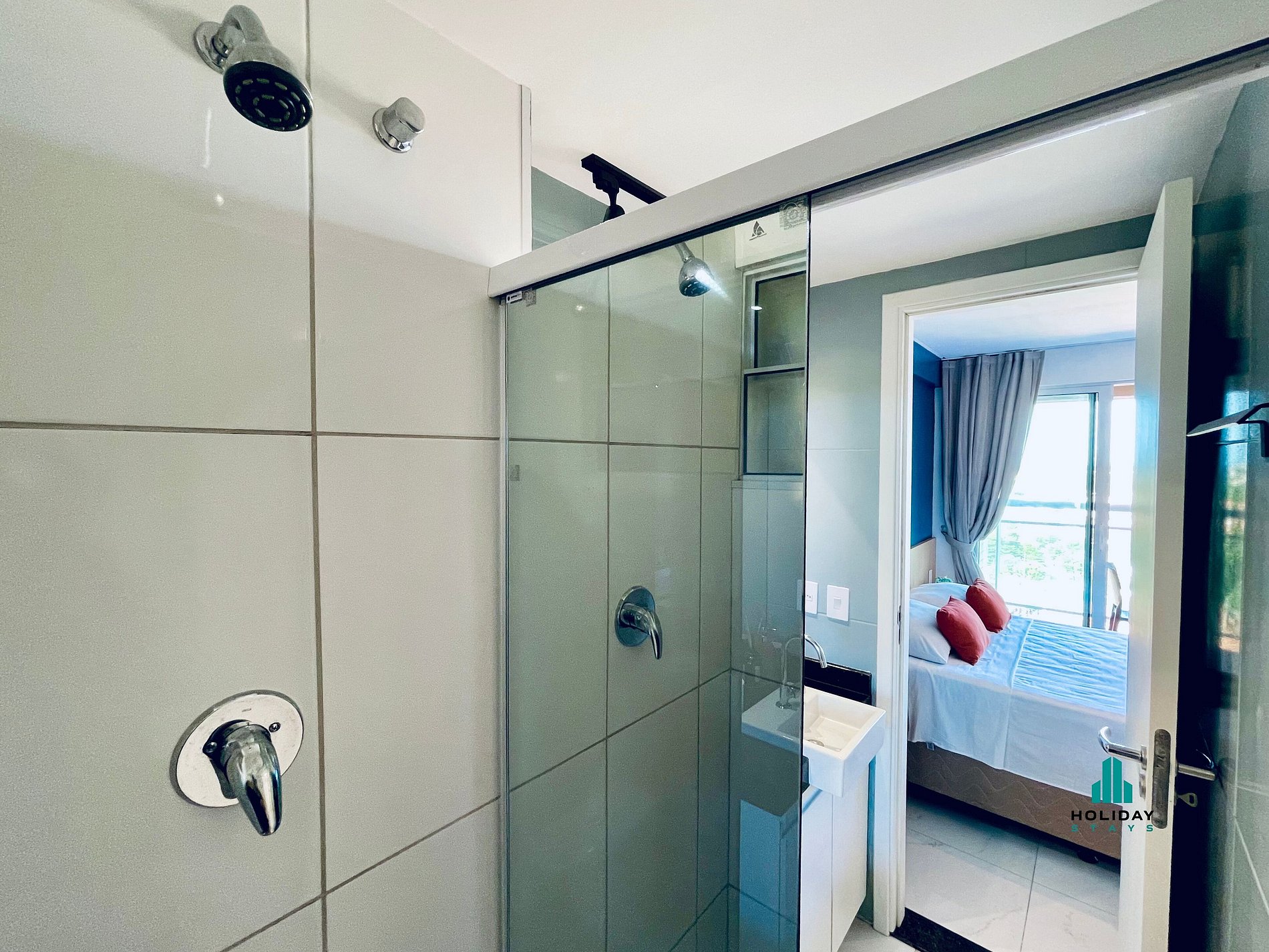 O banheiro possui chuveiro com água quente e a varanda oferece uma vista tranquila para relaxar. O condomínio dispõe de diversas comodidades e está em localização estratégica, próximo a pontos de interesse da cidade.