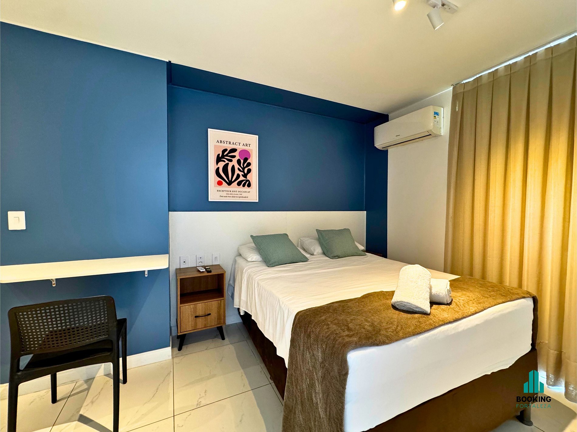 Quarto com cama de casal e ar condicionado