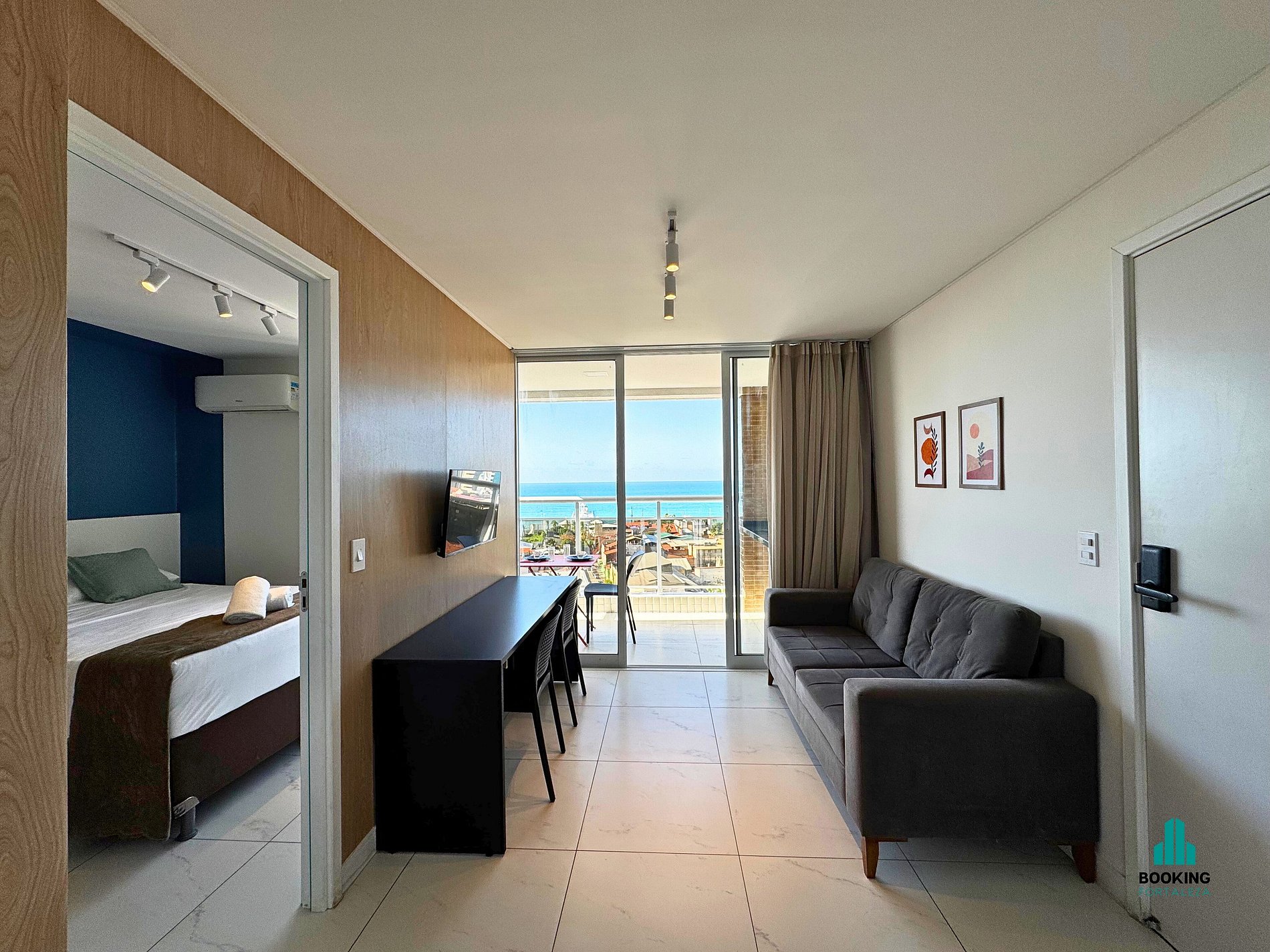 Desfrute de um apartamento moderno e confortável com linda vista pro mar, ideal para casais ou executivos a trabalho. O espaço conta com: