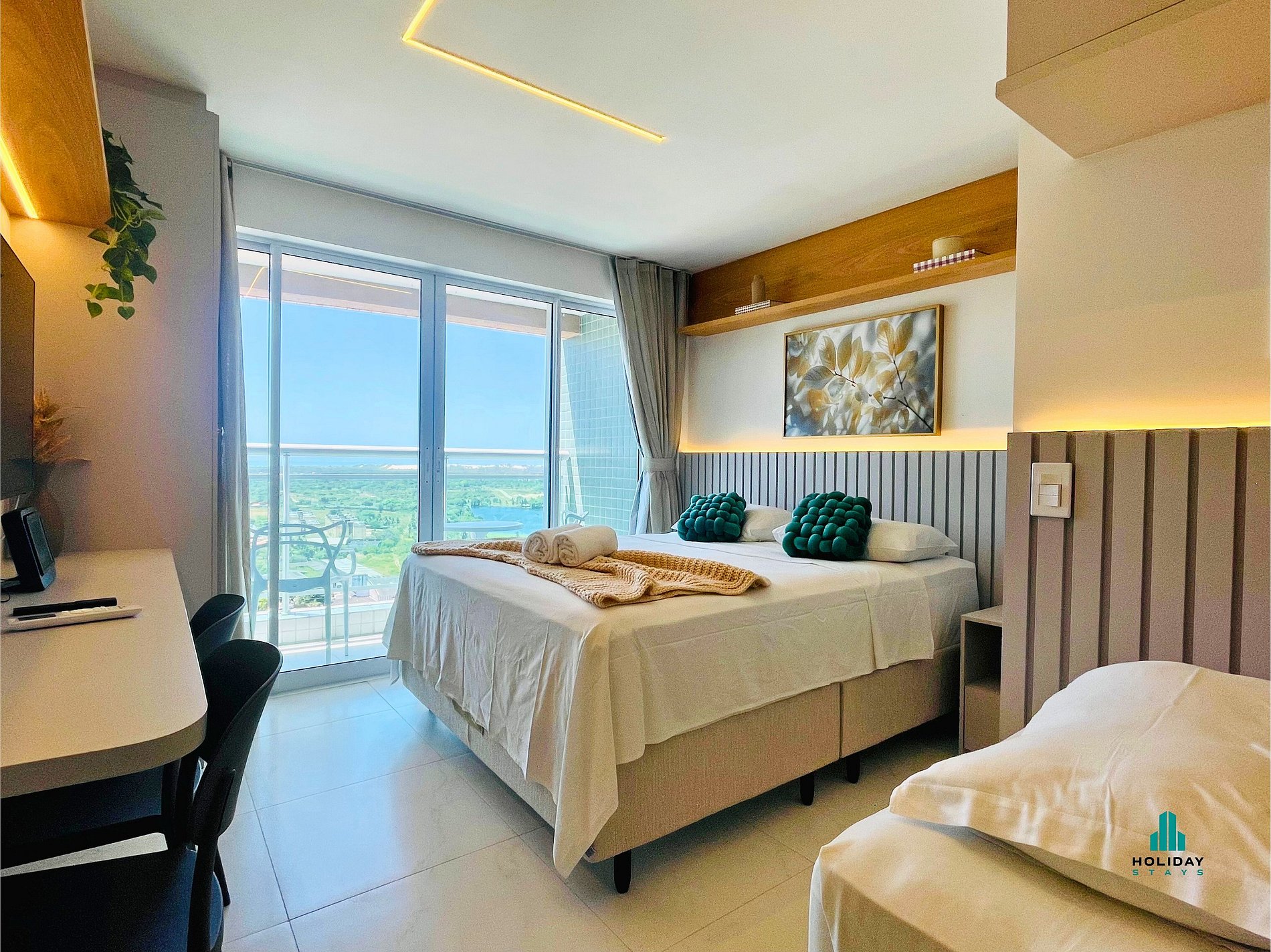 Apartamentos de alto padrão Ideal para quem busca conforto, o apartamento oferece internet de alta velocidade, Smart TV, ar-condicionado, mesa de jantar e mesa trabalho, varanda com mesa e cadeiras, além de uma estrutura completa para sua estadia.