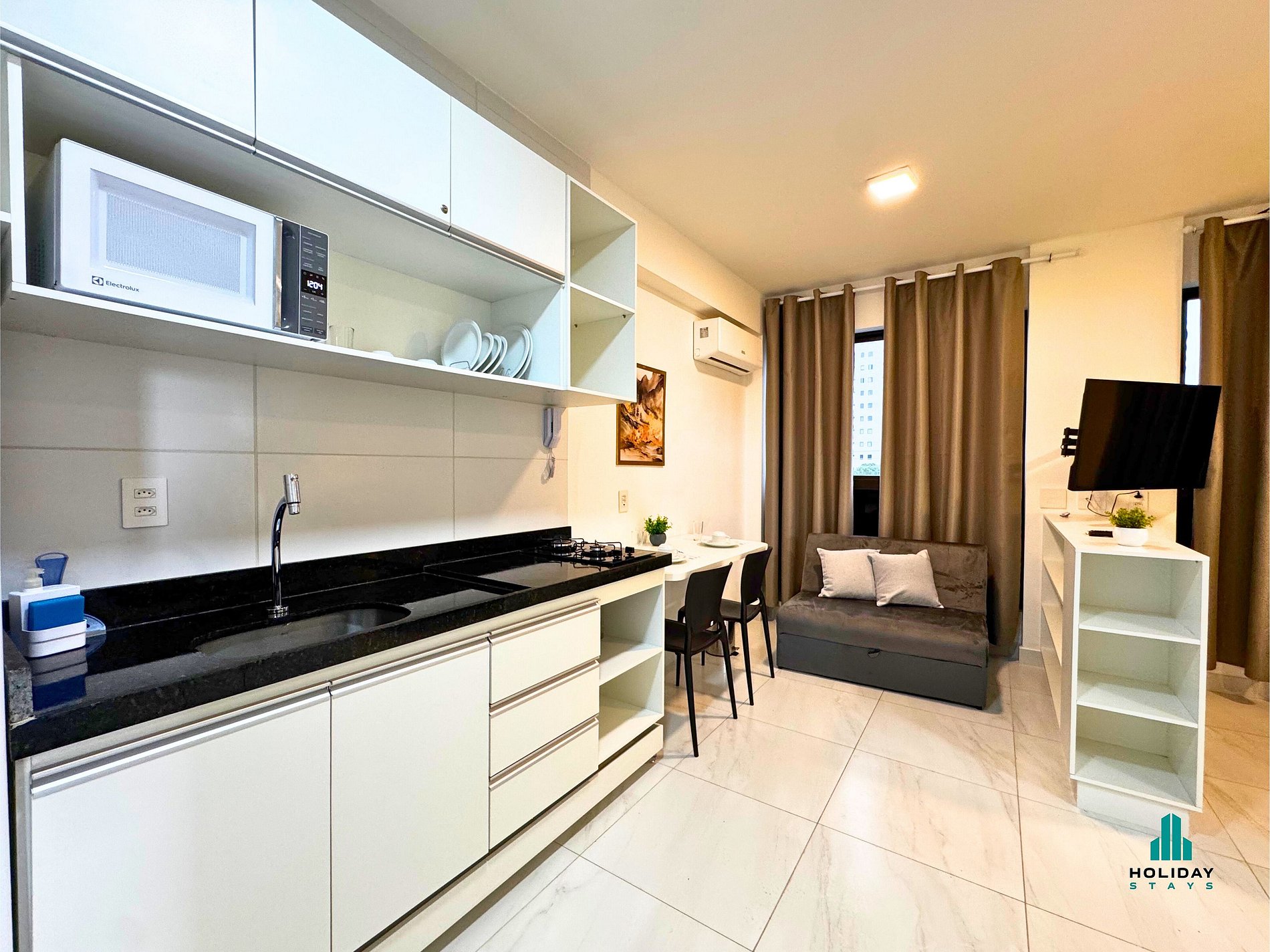 Desfrute de conforto e praticidade neste apartamento completo. Cozinha está equipada com todos os utensílios para preparar suas refeições. A sala aconchegante conta com sofá-cama, cama de casal e mesa para refeições. O banheiro possui chuveiro com água quente. Internet Wi-Fi e disponível para trabalho ou lazer. Ideal para viagens a dois, famílias pequenas ou estadias de negócios.