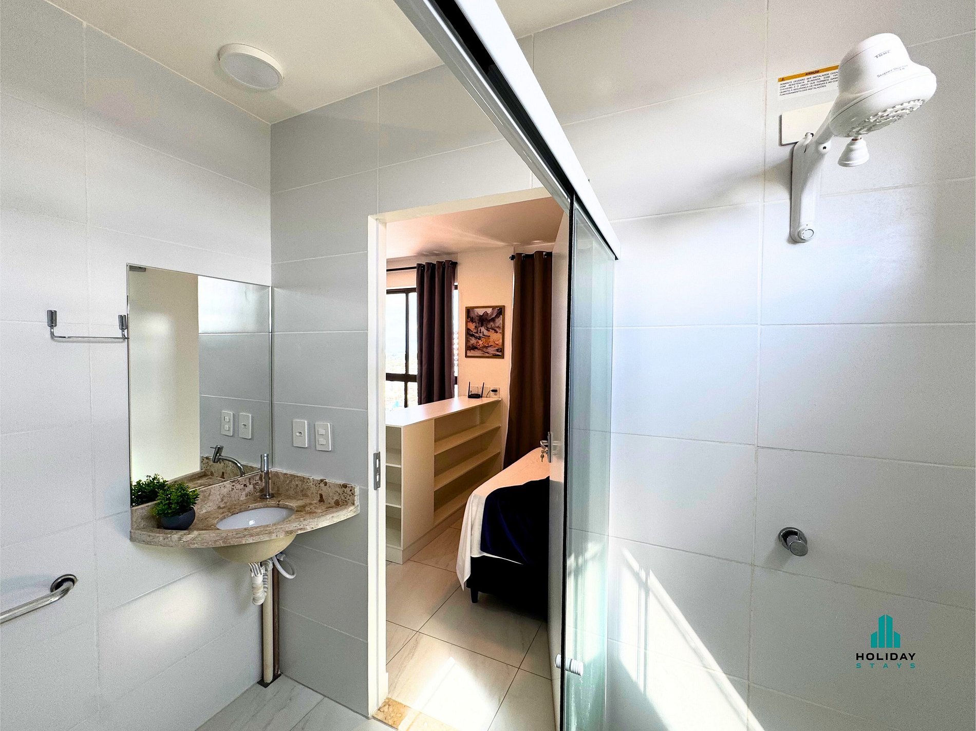 Banheiro com chuveiro e água quente